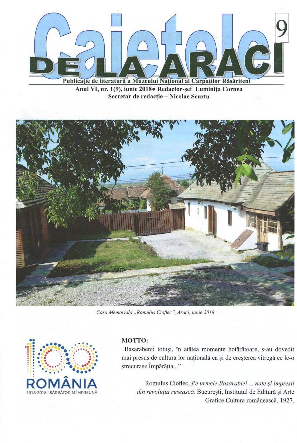 Numărul 9 din publicația de literatură a Muzeului Național al Carpaților Răsăriteni ''Caietele de la Araci'', anul VI,nr.1(9), iunie 2018.