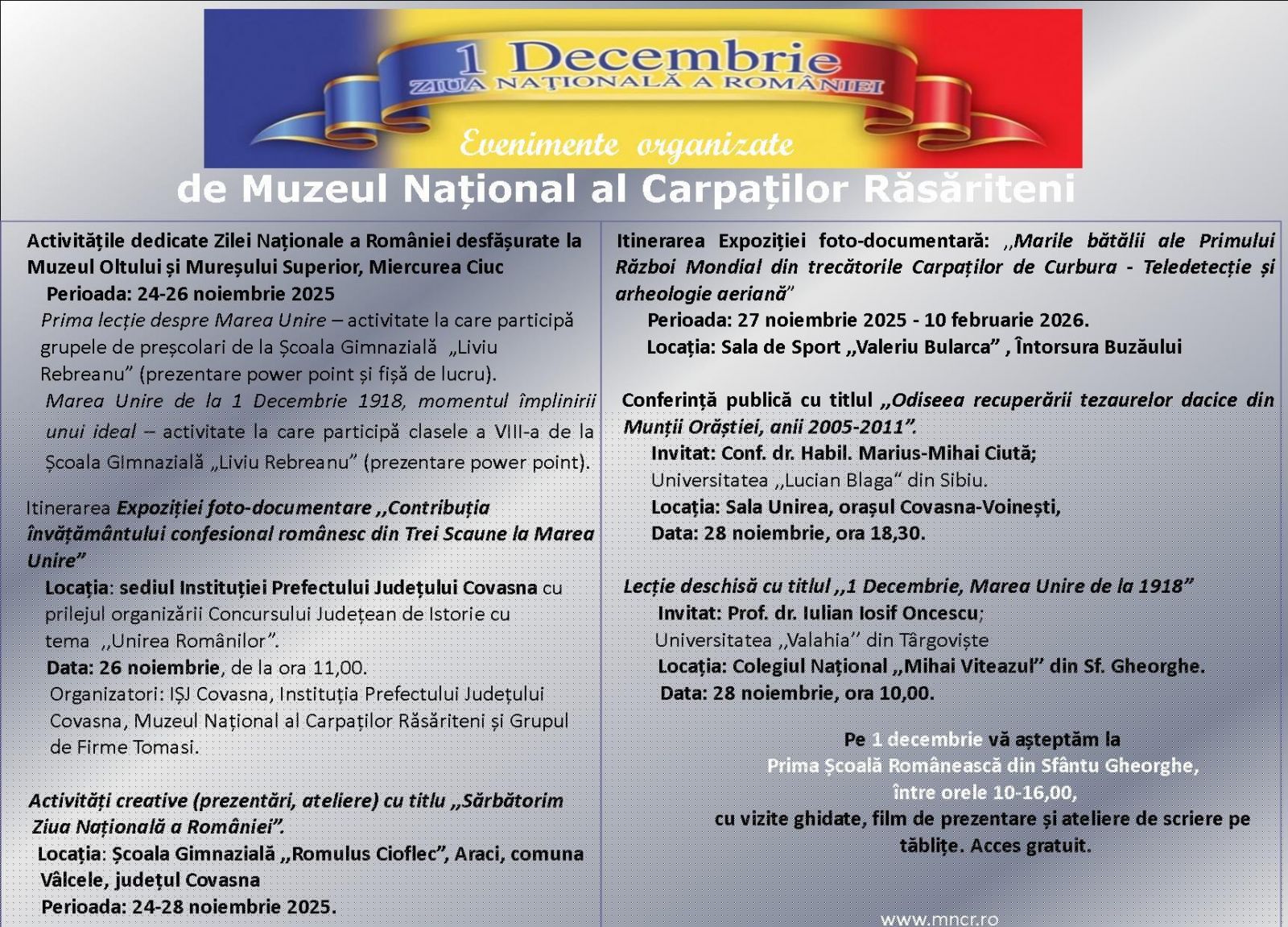 Evenimente organizate de Muzeul Național al Carpaților Răsăriteni cu ocazia Zilei Naționale a României, 2025
