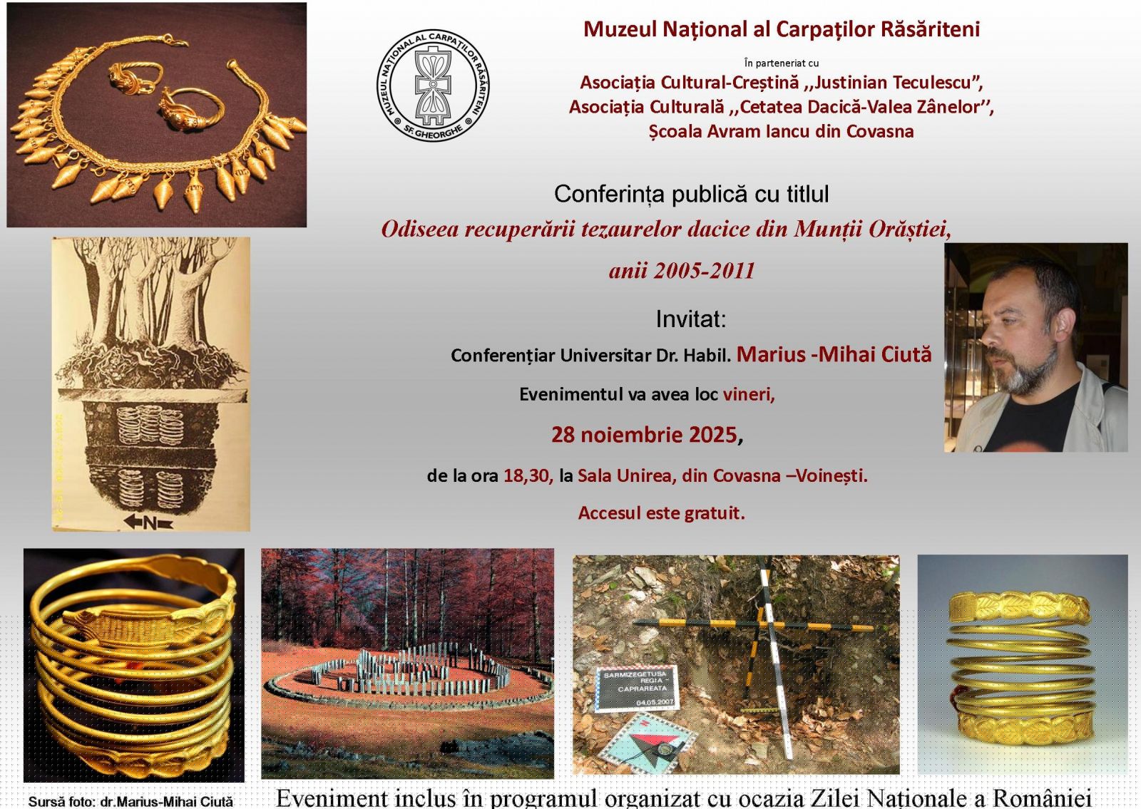 ·         Conferință publică cu titlul ,,Odiseea recuperării tezaurelor dacice din Munții Orăștiei, anii 2005-2011”.